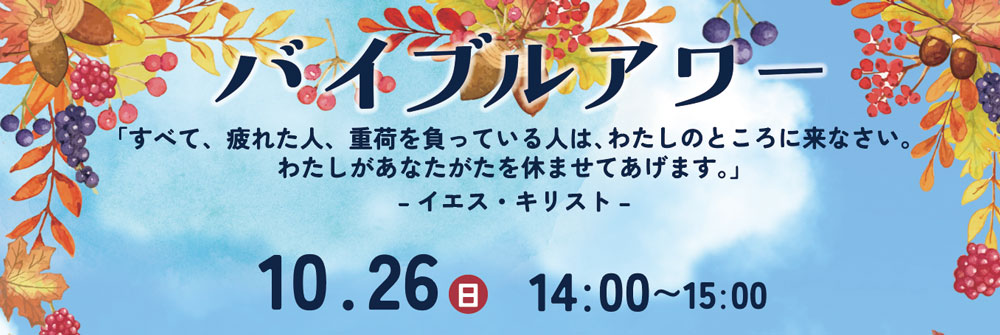 ○ バイブルアワー「聖書のお話と賛美のうた」☆10月は26日に開催!参加自由&無料。どうぞお越しください!フライヤー・お問い合わせ